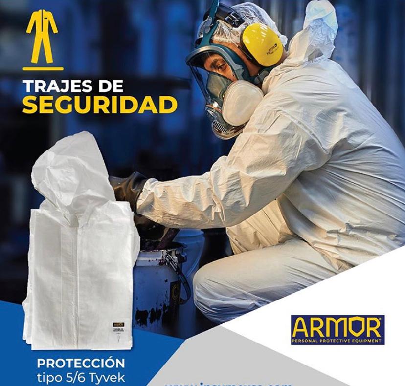 Fabricado con tela de polipropileno y lámina de PE color blanco; resistente a partículas sólidas y salpicaduras de químicos nivel 5/6. Liviano y fresco.